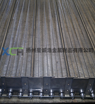 鏈網是由網帶邊緣鑲鏈條,鏈條附在從網條穿過的支軸上面。網面密度由加工產品的尺寸決定。